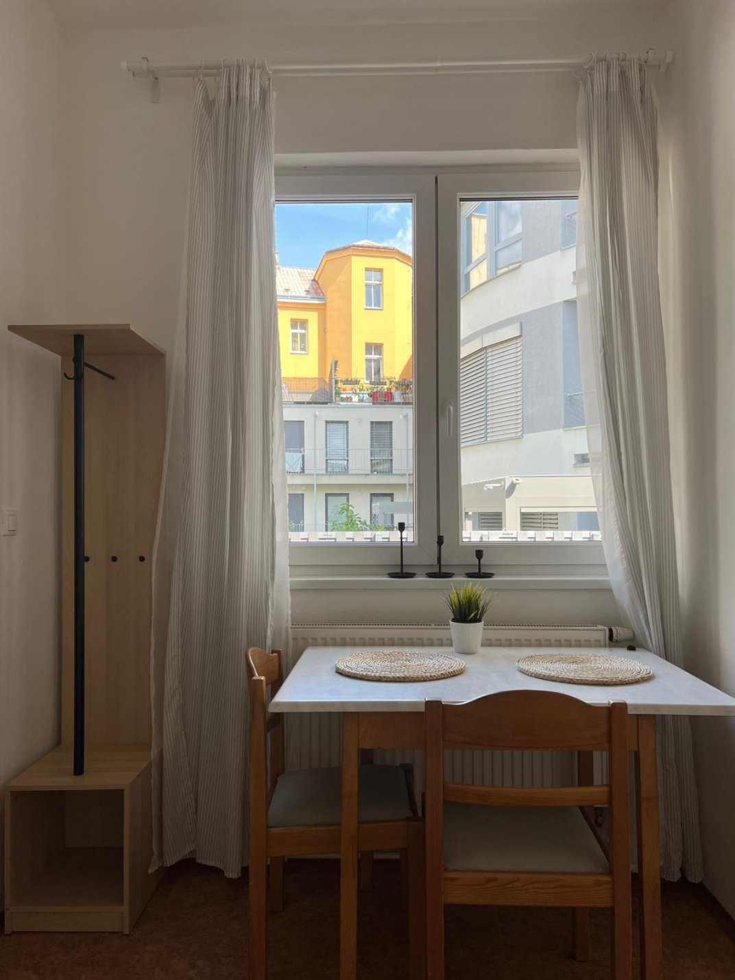 Ponúkame k prenájmu byt 1+kk na ul. Rumište, blízko hlavného nádraží. Všetok nábytok na fotografiách na byte ostáva. V kuchyni je lednice s mrazákem, myčka nádobí, trouba a práčka.